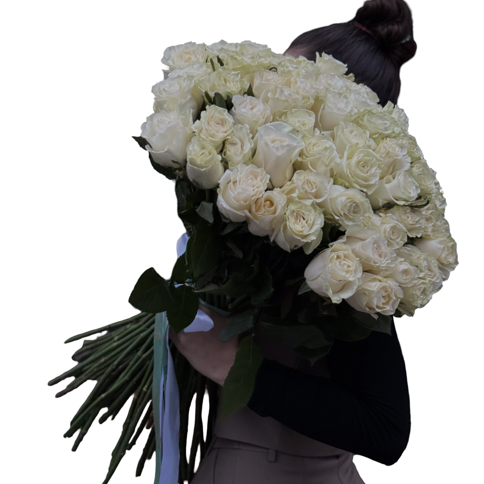 Buchet simplu și elegant din 61 de trandafiri albi, panglică elegantă. Un buchet elegant, potrivit pentru a transmite afecțiune, apreciere sau a marca momente speciale. Ideal pentru aniversări, zile de naștere, evenimente festive sau cadouri rafinate.