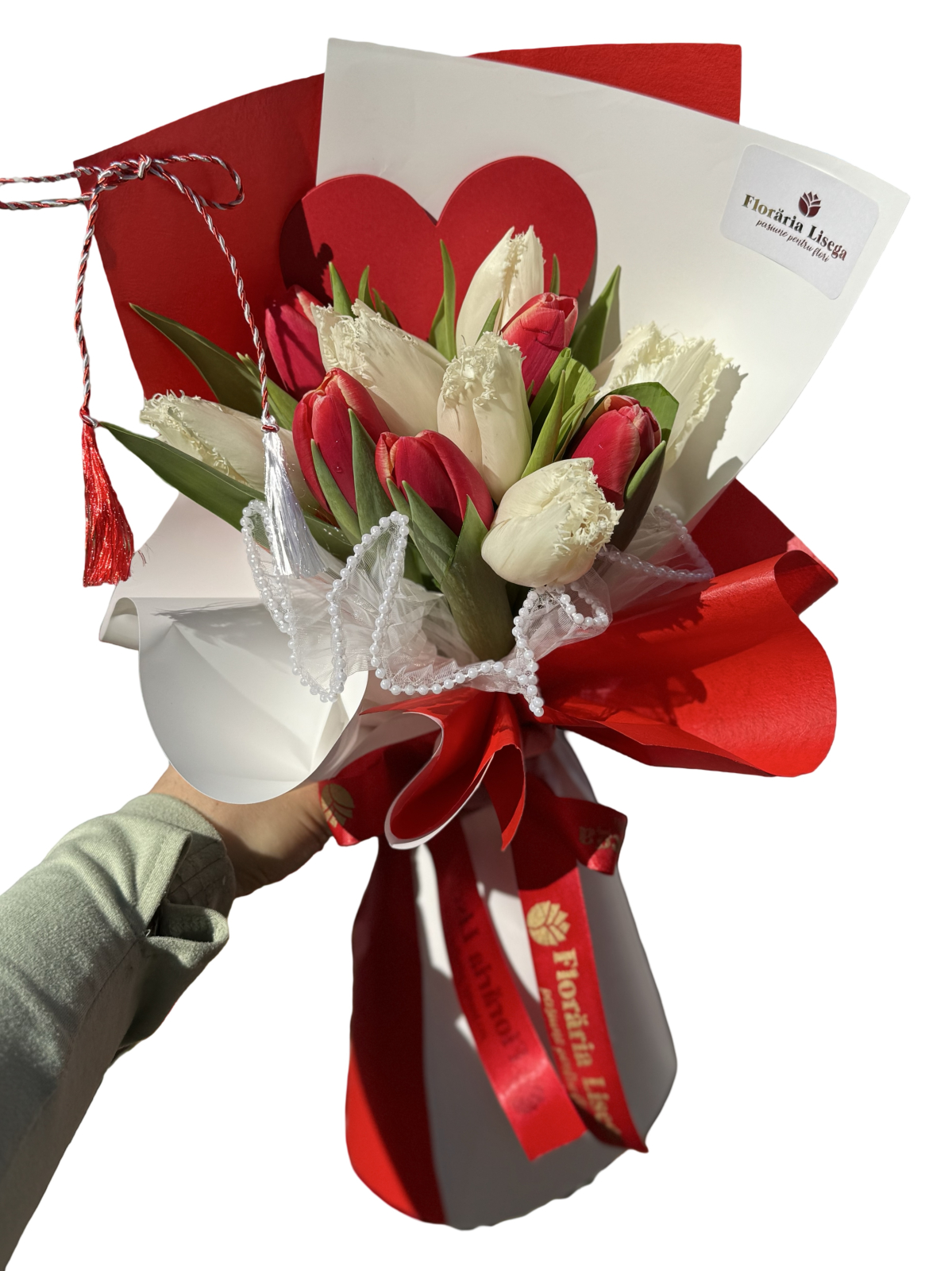 Buchetul "Spring Joy" este un aranjament proaspăt și plin de veselie, realizat din 11 lalele delicate, care aduc parfumul și culoarea primăverii în orice moment special. Ambalajul elegant, inspirat din stilul Pinterest, oferă buchetului un aspect modern, rafinat și foarte fotogenic. Este alegerea perfectă pentru 8 Martie, mici surprize de primăvară, zile onomastice sau pentru a aduce un zâmbet sincer unei persoane dragi.